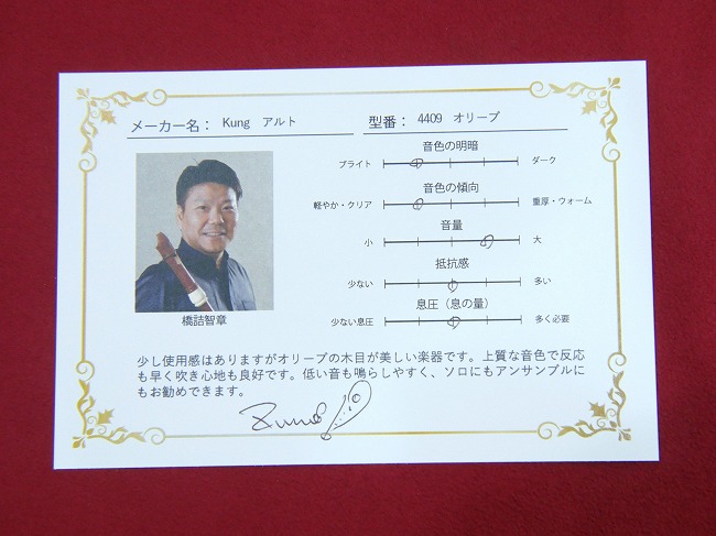 キュングの高級モデル、マルシアスです。オリーブ材で見た目に落ち着いたブラウンとなっております。重すぎず、ちょうどいい感じの重量です。音質は明るくて素晴らしく良い音です。音の抜けも抜群によいので吹き心地もいいですね。文句なしの最良品です!