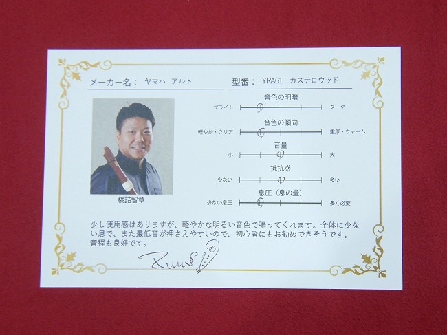カステロウッド材です。とにかく軽い(139g)です。カステロウッド材らしい、軽い音色ですが、とても気持ちよく響きます。これからアルトリコーダーを始める方や、木製リコーダーを初めて購入される方に、とてもお勧めできる一品だと思います。