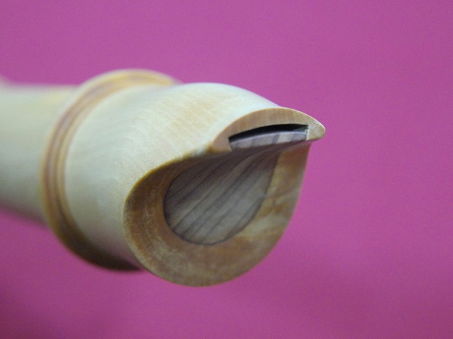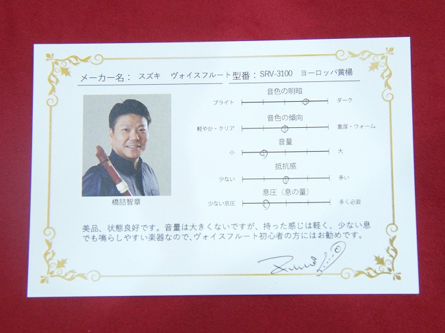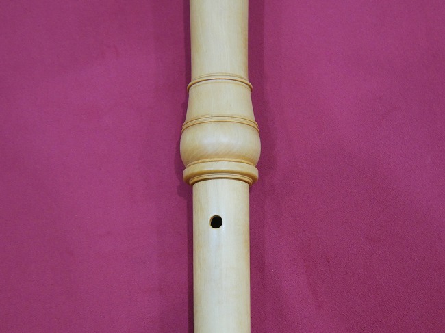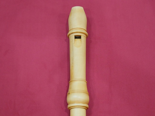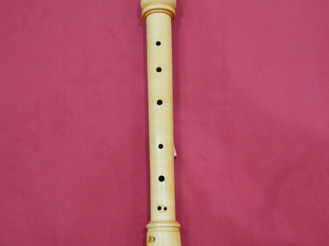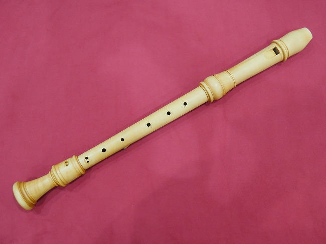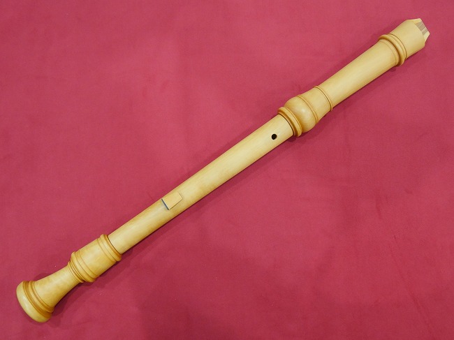 ヴォイスフルートはD管で、しかも「415Hz(いわゆるバロックピッチ)」です。つまり物凄く無粋な言い方をすると「いわゆるモダンピッチ(440Hz)のテナーリコーダーより半音高いリコーダー(=C#管)」ということになります。しかし半音違うだけで、どうしてこうも「標準的テナーリコーダー」とは明らかに一線を画する独特の音色を纏ってしまうのだろう!?この個体は間違いなくあなたをそう思わせてくれます。重量は約340gです。運指がしやすいようにスズキ製の指かけが取り付けられております。深くて個性的な音色は唯一無二、且つその表情は息圧により変幻自在に反応してくれます。ヨーロッパ黄楊で製作されたモデルは今年廃盤となってしまったため、超貴重な1本です。お勧めです!