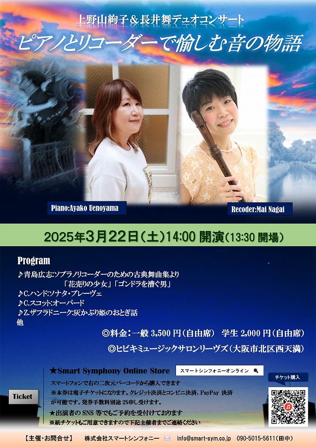 上野山絢子&長井舞デュオコンサート ピアノとリコーダーで愉しむ音の物語