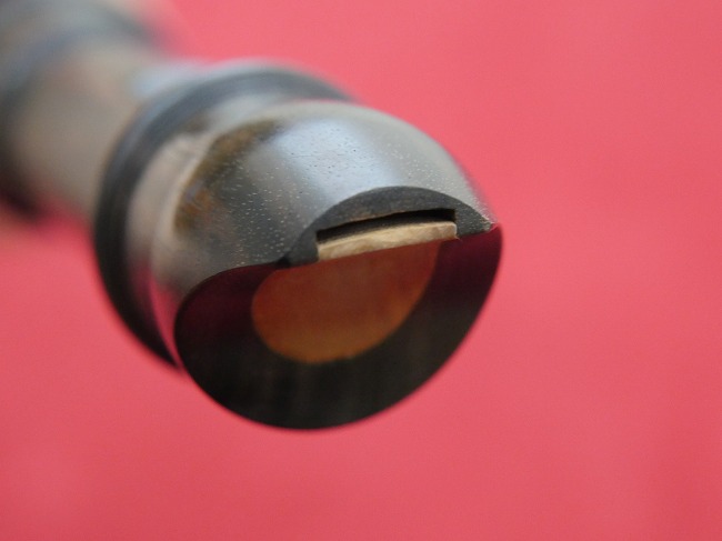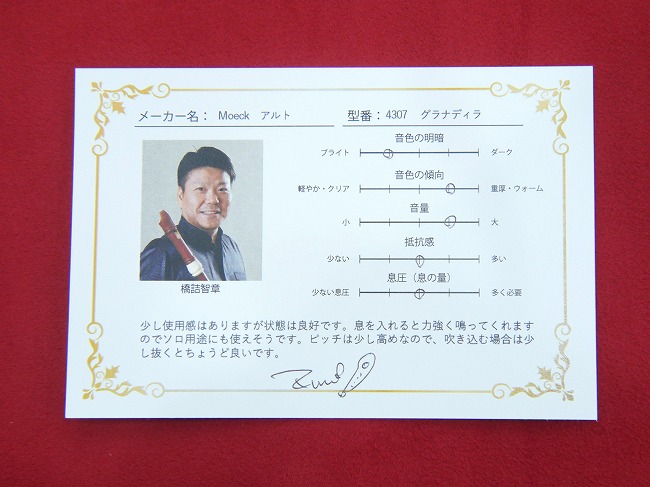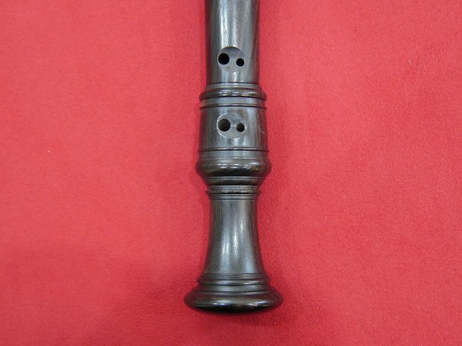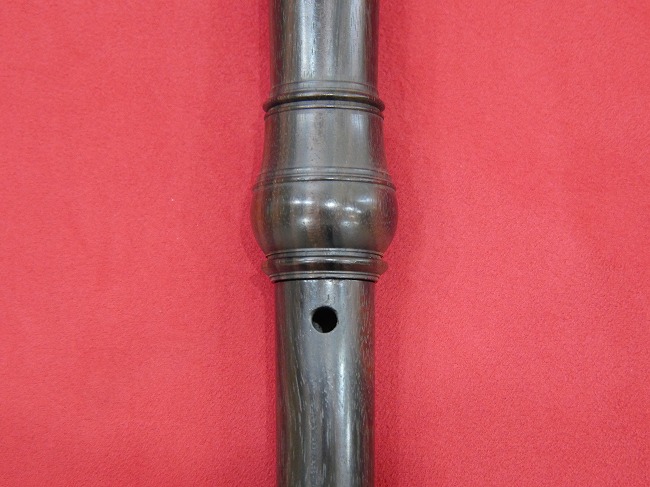 この個体は一般的なグラナディラ材より少し灰色がかった色味で頭部管付近の木目が美しく、とても個性的です。はっきりと発音できて、それでいて音色自体は柔らかい、吹いていてとても気持ちの良い個体です。
